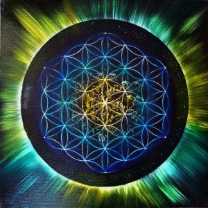 Mit jedem Pinselstrich lasse ich dieses uralte Zeichen in neuer Lebendigkeit erstrahlen. Die Blume des Lebens wirkt nicht nur auf ästhetischer Ebene, sondern auch tief im Inneren: Sie lädt zur Ruhe ein, stärkt die eigene Mitte und erinnert uns daran, dass alles miteinander verbunden ist.